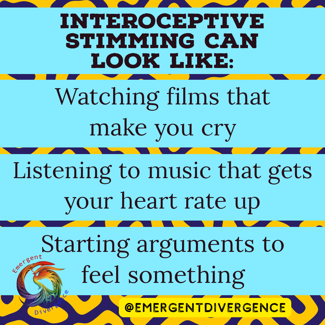 Just in the same way that an autistic person may make repetitive movements or make repetitive sounds, it stands to reason that we may also engage in interoceptive stimming.